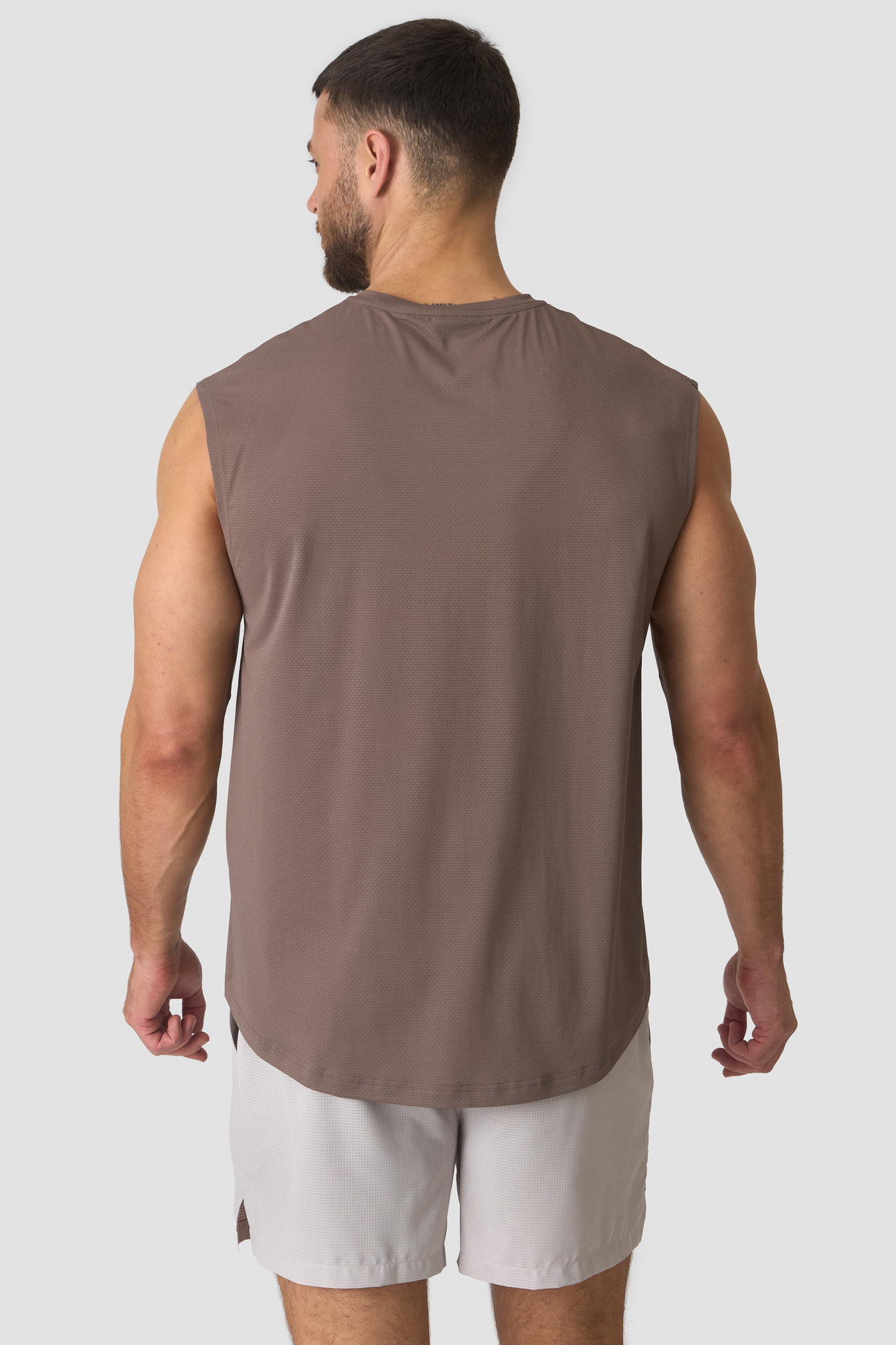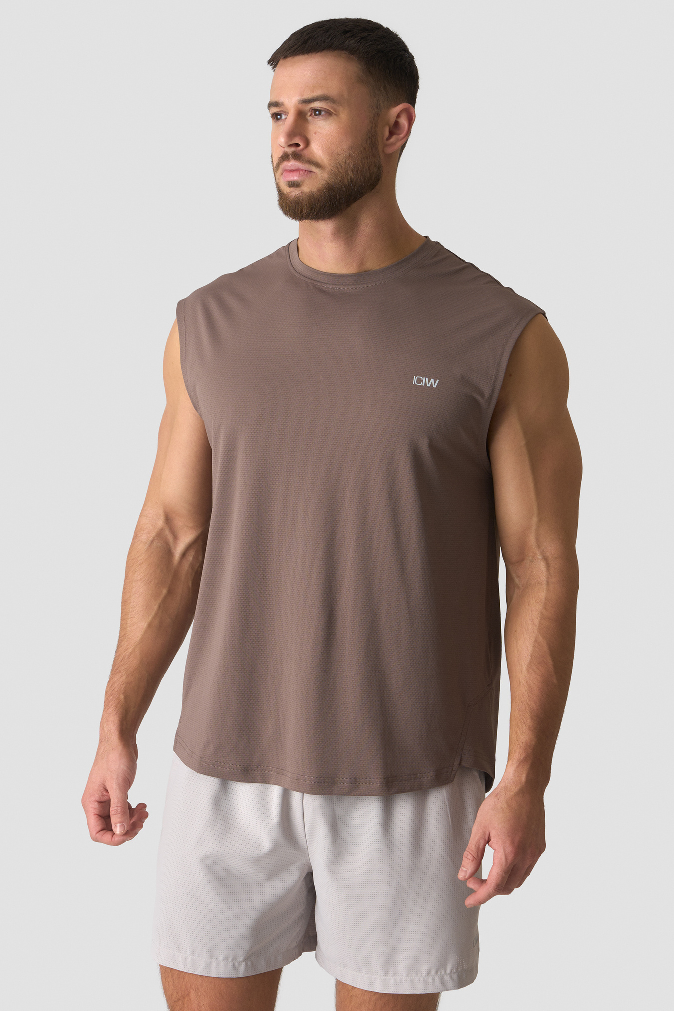 Trainingsoberteil aus einem Netzmaterial. Das Stride Sleeveless T-Shirt ist wie gemacht für das Fitnessstudio und harte Trainingseinheiten. Es besteht aus einem leichten Waffel-Mesh-Material, das Sie angenehm kühl hält. Der etwas längere Rücken, die kleinen Seitenschlitze und die Raglanärmel geben Ihnen volle Bewegungsfreiheit. 90% Recyceltes Polyester, 10% Elasthan.