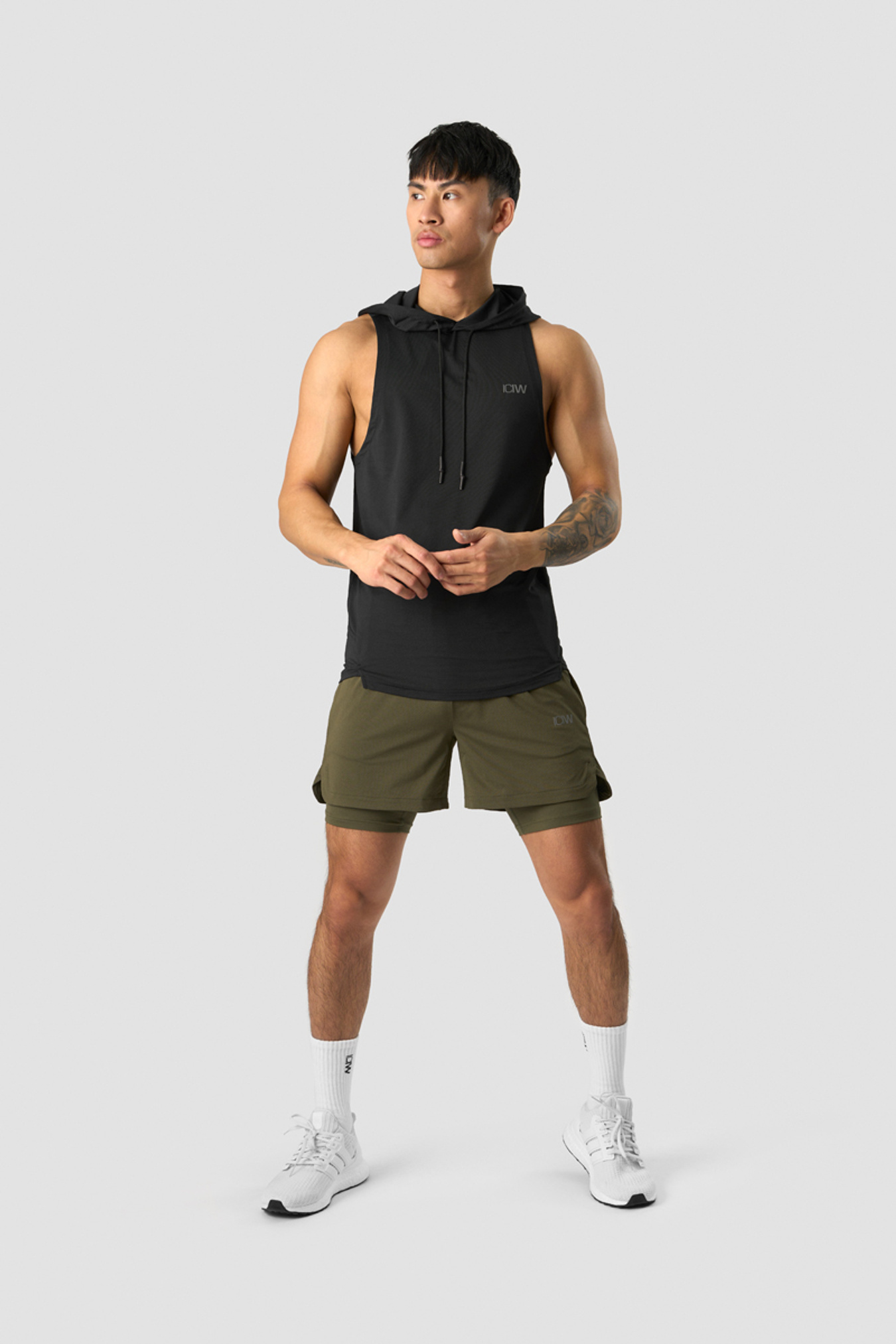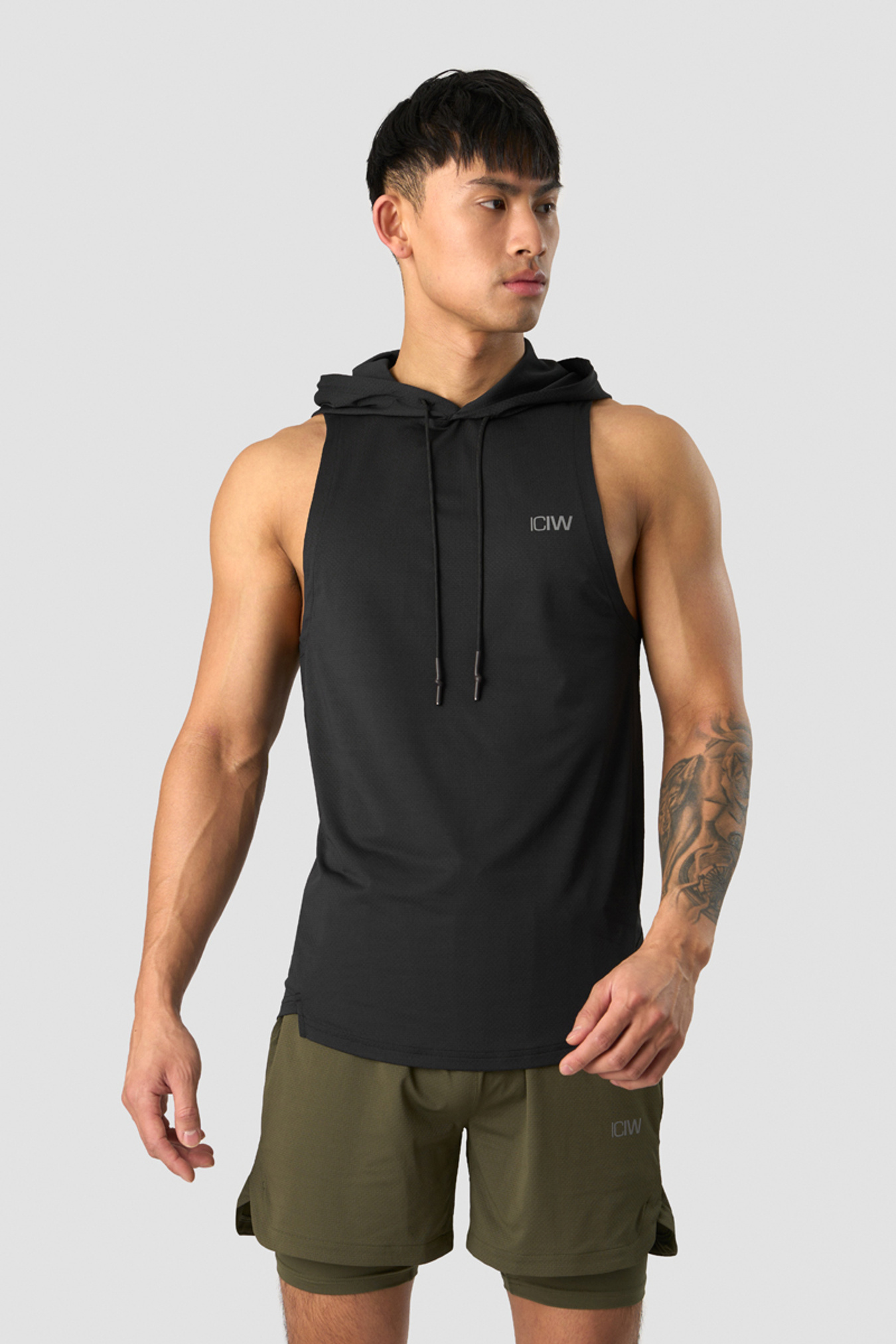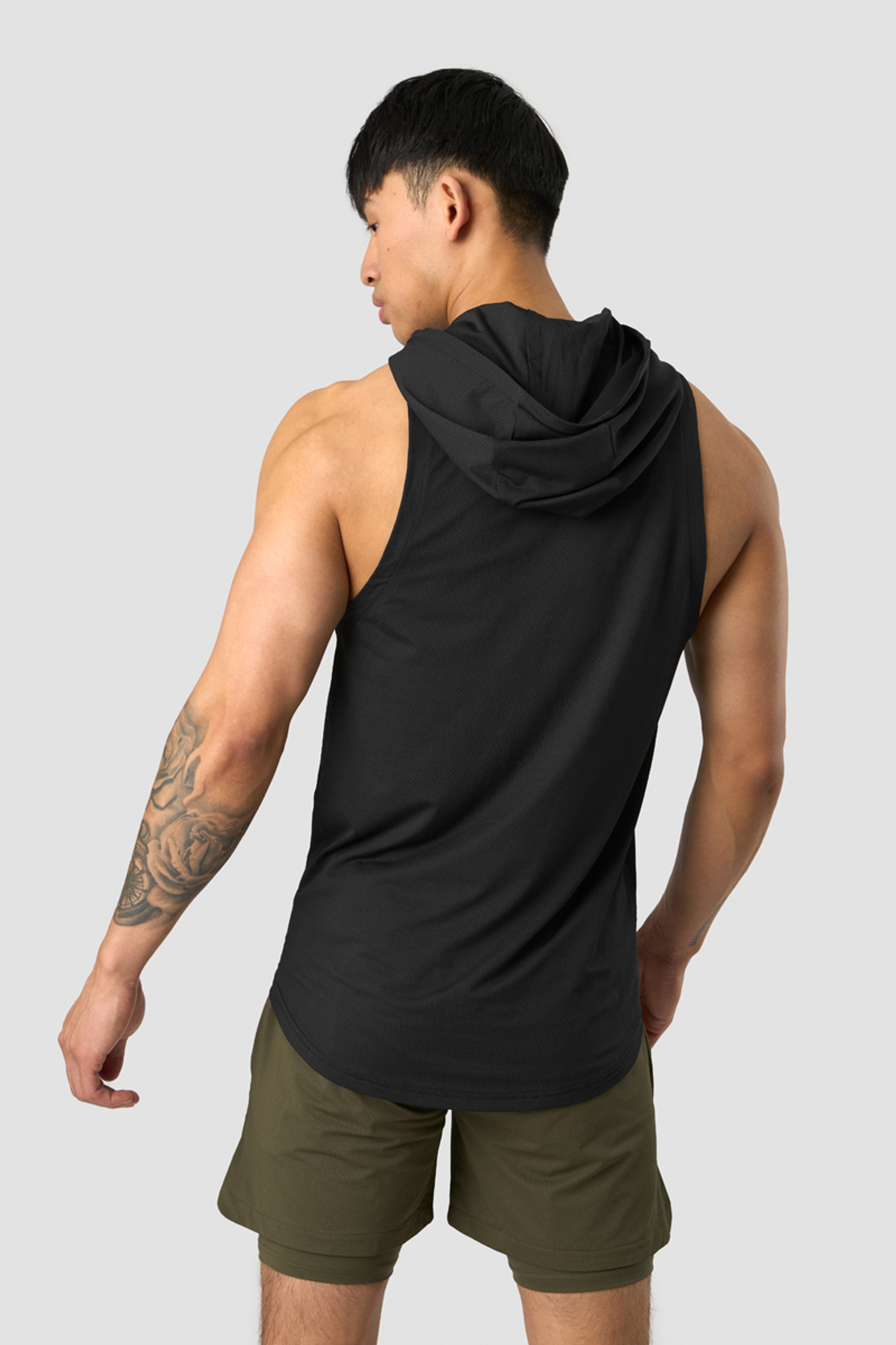 Ärmelloser Kapuzenpullover aus Netzmaterial. Das ärmellose Stride T-Shirt-Hoodie ist wie gemacht für das Fitnessstudio und harte Trainingseinheiten. Es besteht aus einem leichten Waffel-Mesh-Material, das Sie angenehm kühl hält. Hinten etwas länger und mit kleinen Seitenschlitzen, die Ihnen volle Bewegungsfreiheit geben. Verstellbare Kapuze mit gummierten Kordelzügen.
